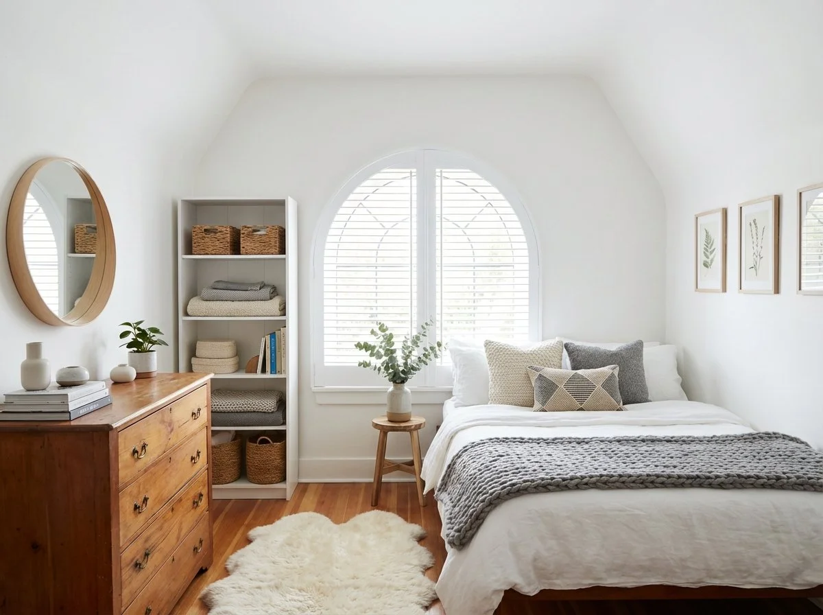 Arched living room shutters in a Seattle home